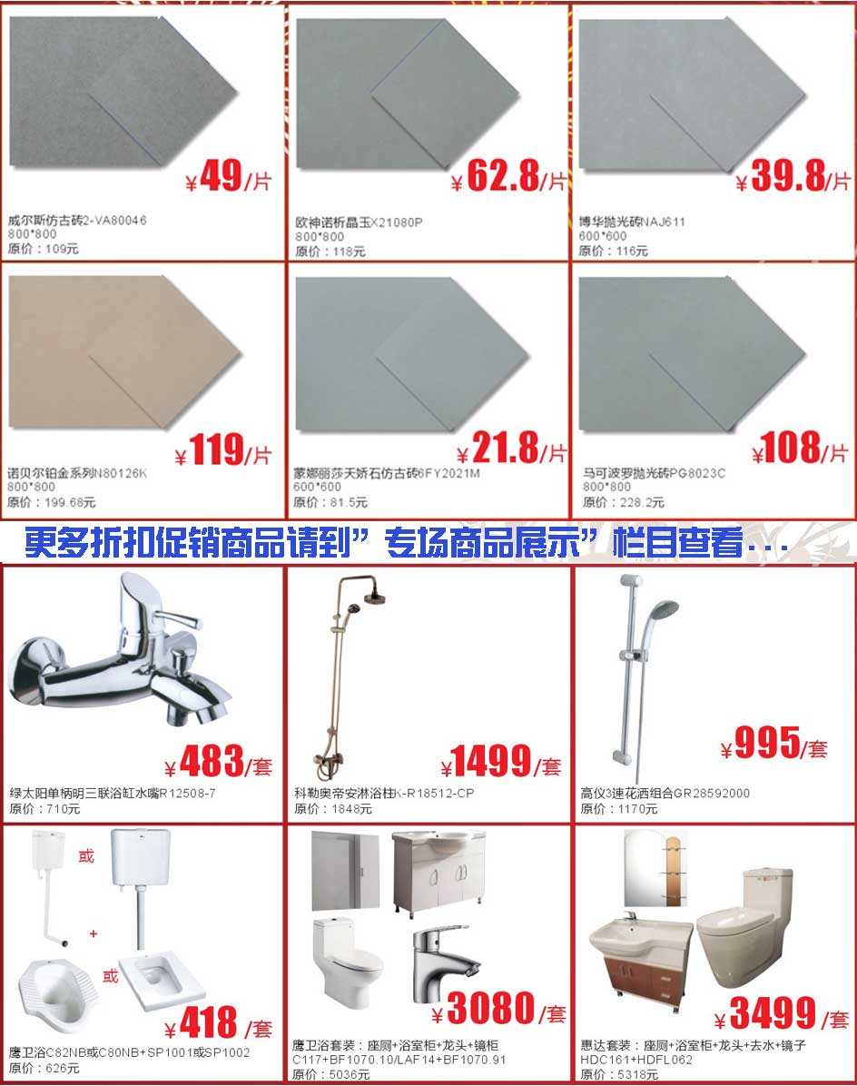 以下为满100立减和特价折扣部分商品图示 进入《专场商品展示》栏目查看全部团购、特价商品,网上可直接订购